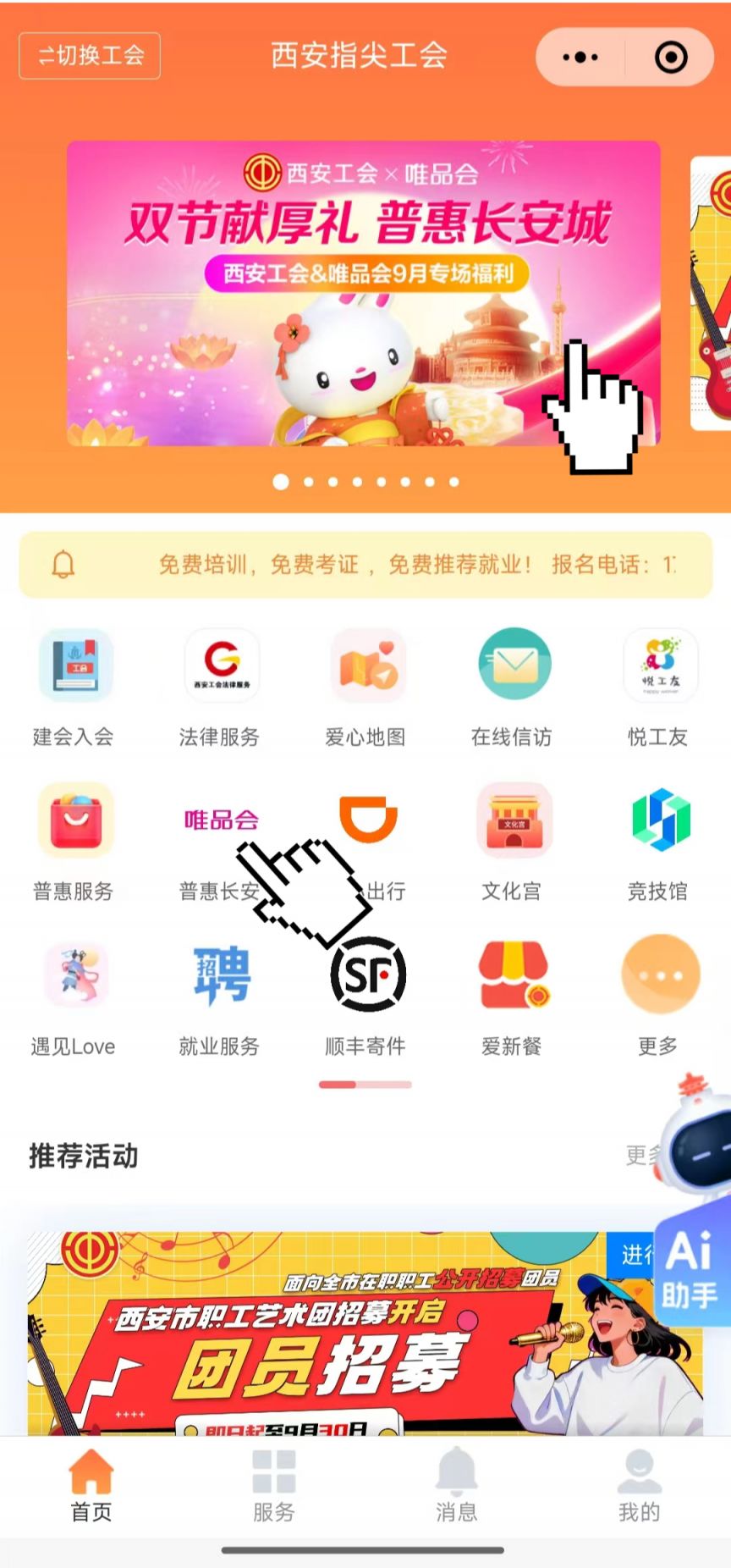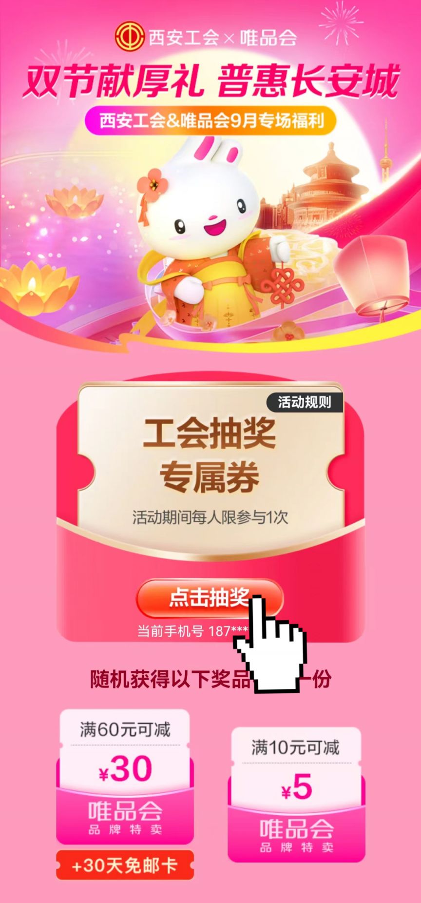 【导语】:西安指尖工会小程序,每位工会会员可参与一次,消费券即时到账可在唯品会平台直接使用。